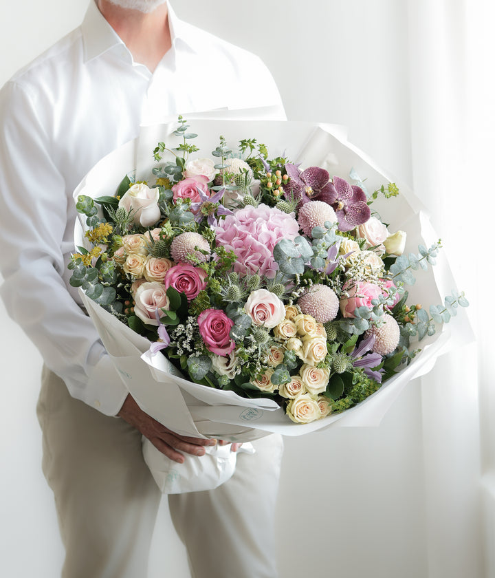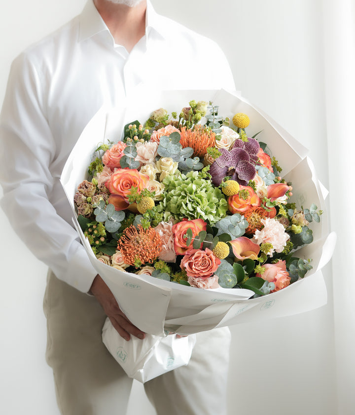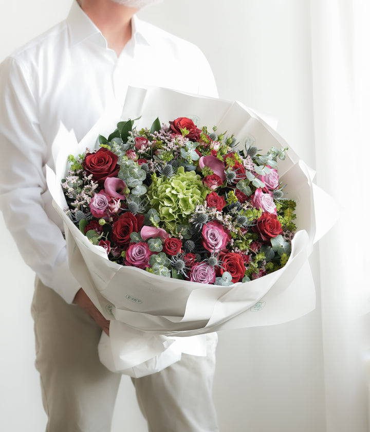 Let our designers create a sumptuous custom bouquet available in six sizes and six color combination. This most popular item is composed of a luxurious mix of Premium seasonal flowers.