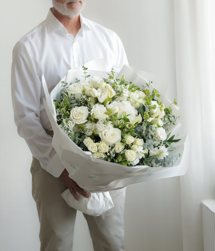 Our hand-tied bouquets are made to value rather than to a physical size specification. Flower prices vary from week to week, so this method ensures the bouquets are always up to value.
