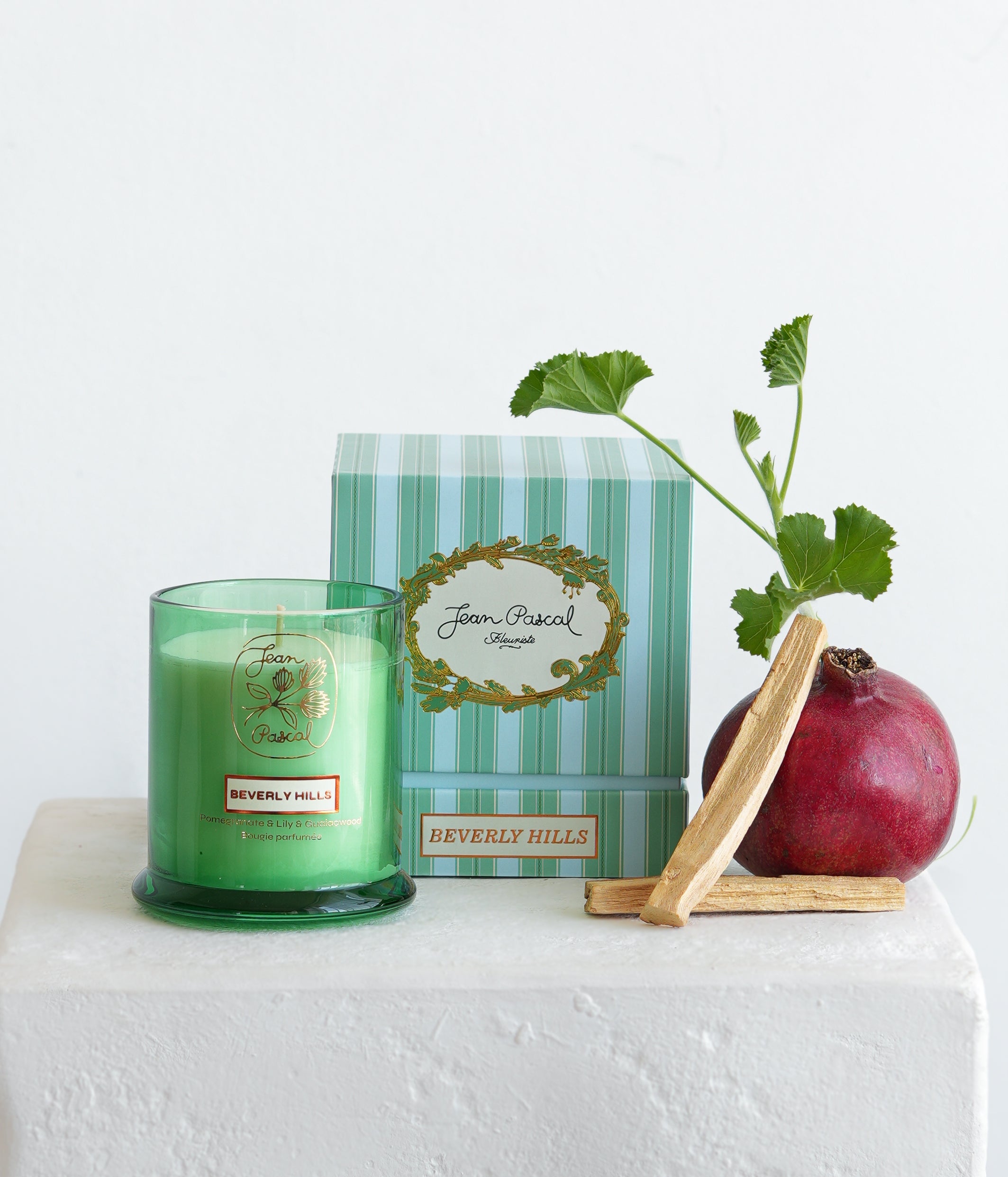 A tribute to the glamour and refinement of our Beverly Hills atelier. This perfume candle blends the juicy brightness of pomegranate, the delicate femininity of lily, and the grounding warmth of guaiac wood. Elegant and alluring, it captures the charm of our neighborhood with a modern yet timeless character.