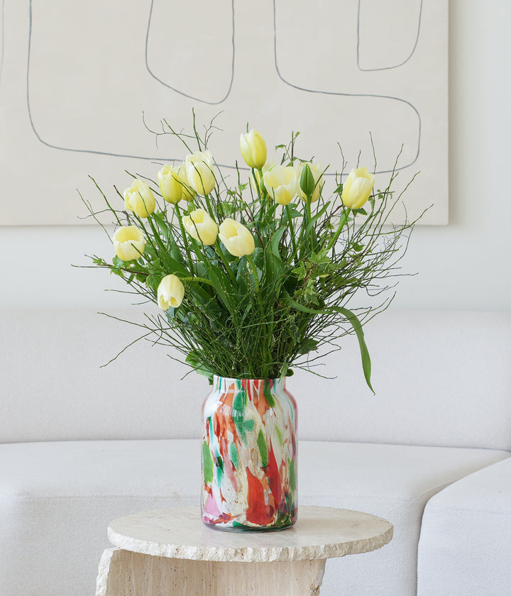 Fifteen tall French cream tulips from Holland, simply arranged to highlight their natural movement and elegance, then hand-wrapped in our signature packaging for a clean, modern finish.