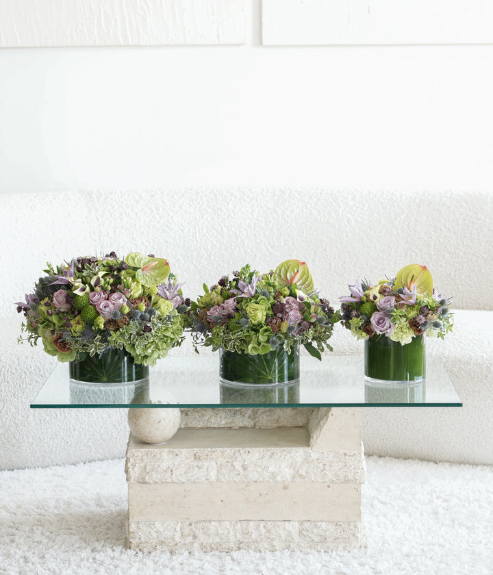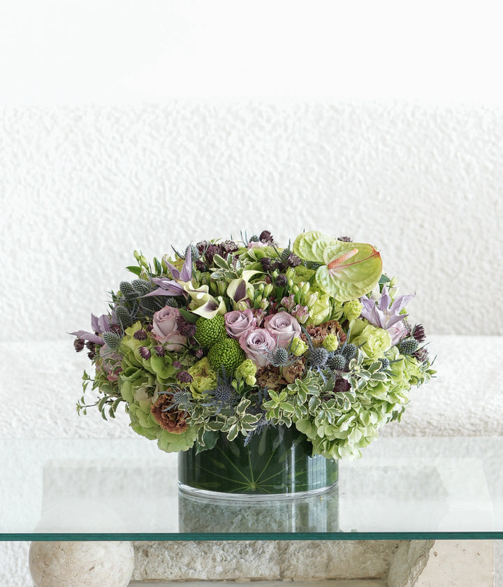Mixed Flowers Lavender Green Centerpiece