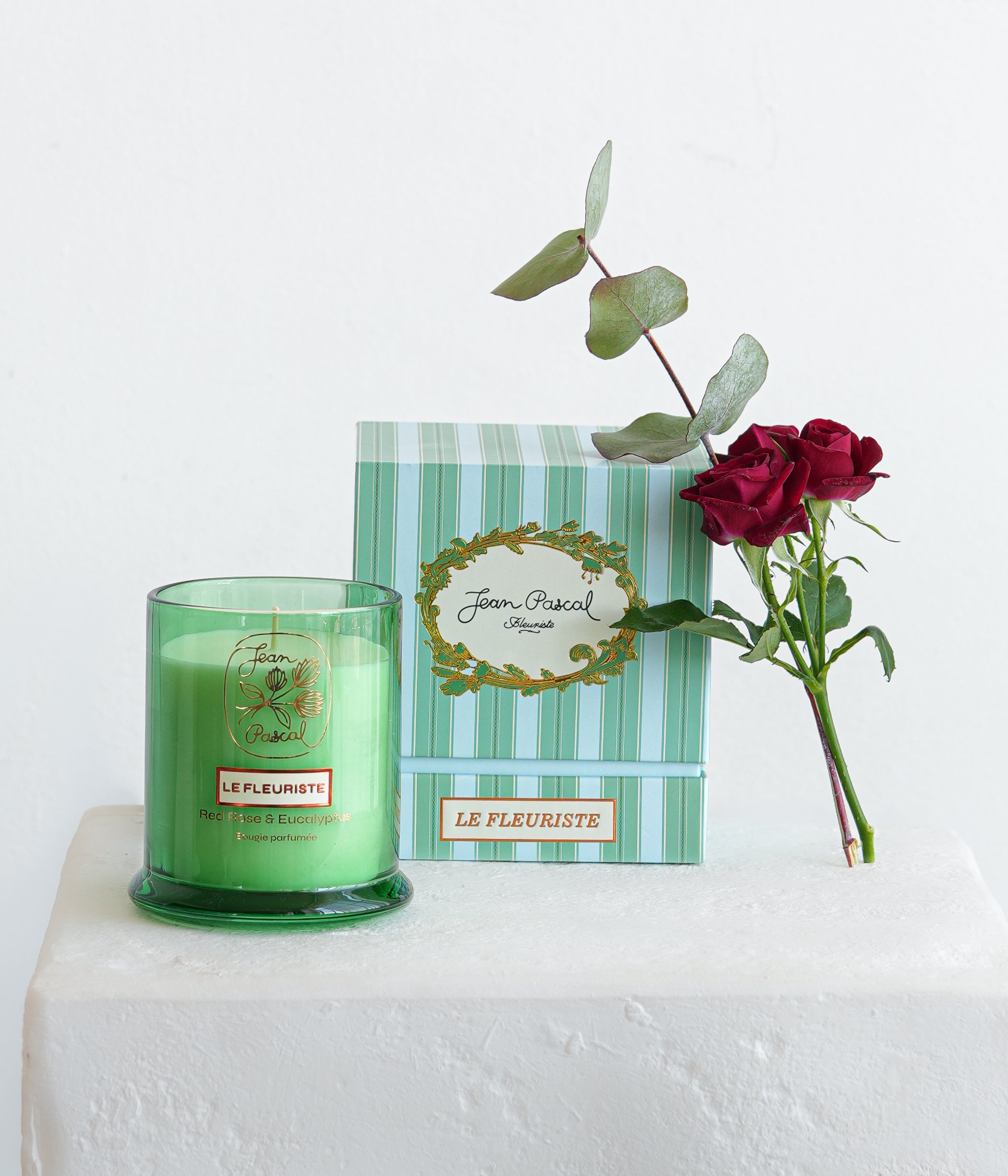 Inspired by the heart of the flower shop. Fresh red roses bloom alongside crisp, green eucalyptus, creating a fragrance that feels both romantic and invigorating. A scent that celebrates craftsmanship, nature, and the beauty of freshly cut stems in the studio.